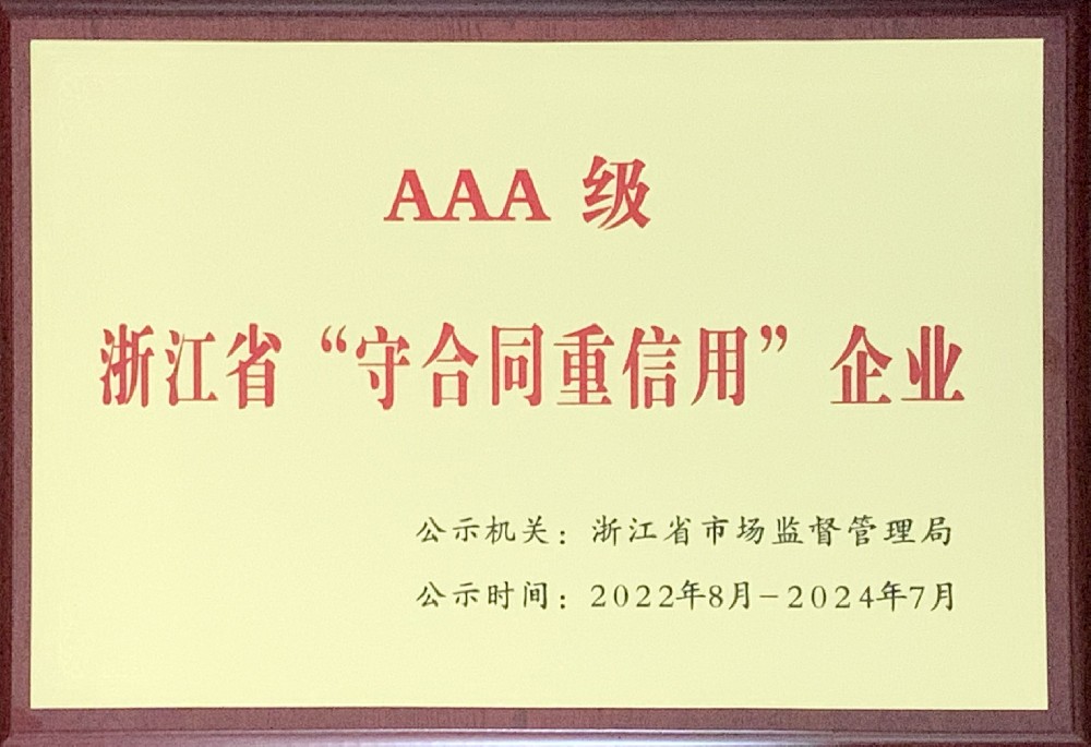 3A級浙江省“守合同重信用”企業(yè)