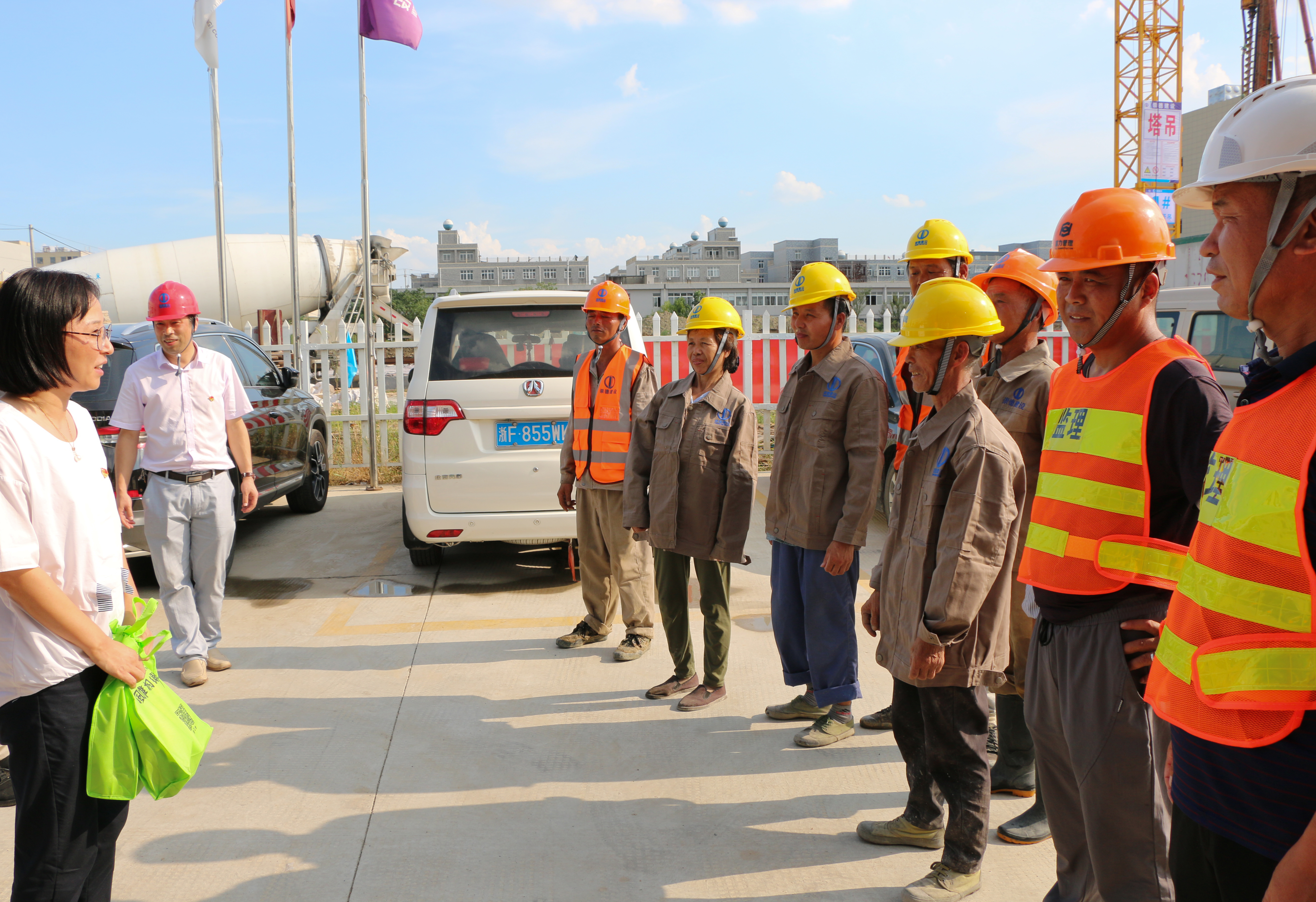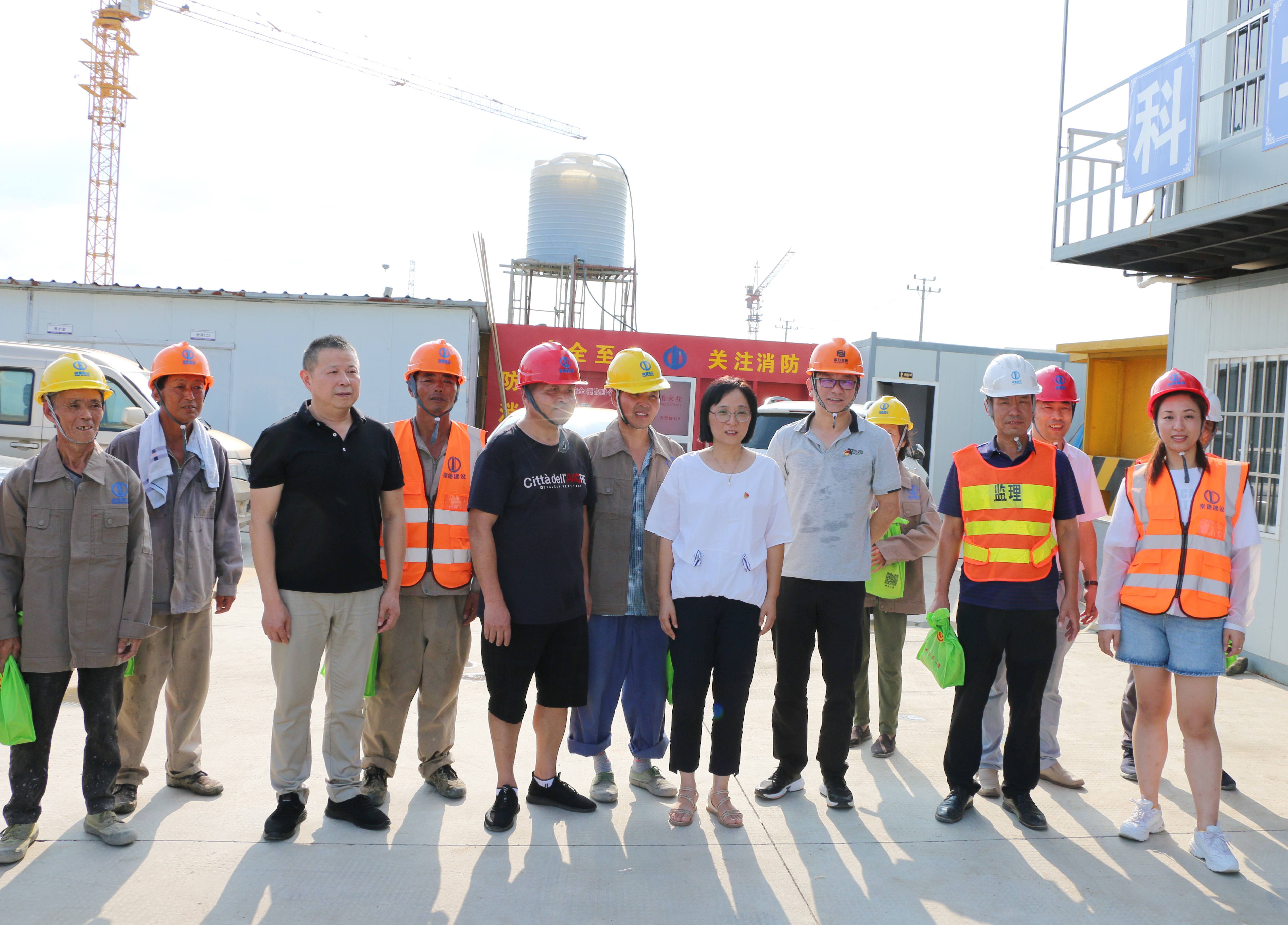 在項目現場,吳副主席一行詳細詢問了項目工地防暑降溫措施及安全生產工作情況,并將慰問品一一送到建筑工人手中,對大家在高溫期間堅守崗位表示感謝,叮囑他們要保護好自己的身體,做好防暑降溫。
