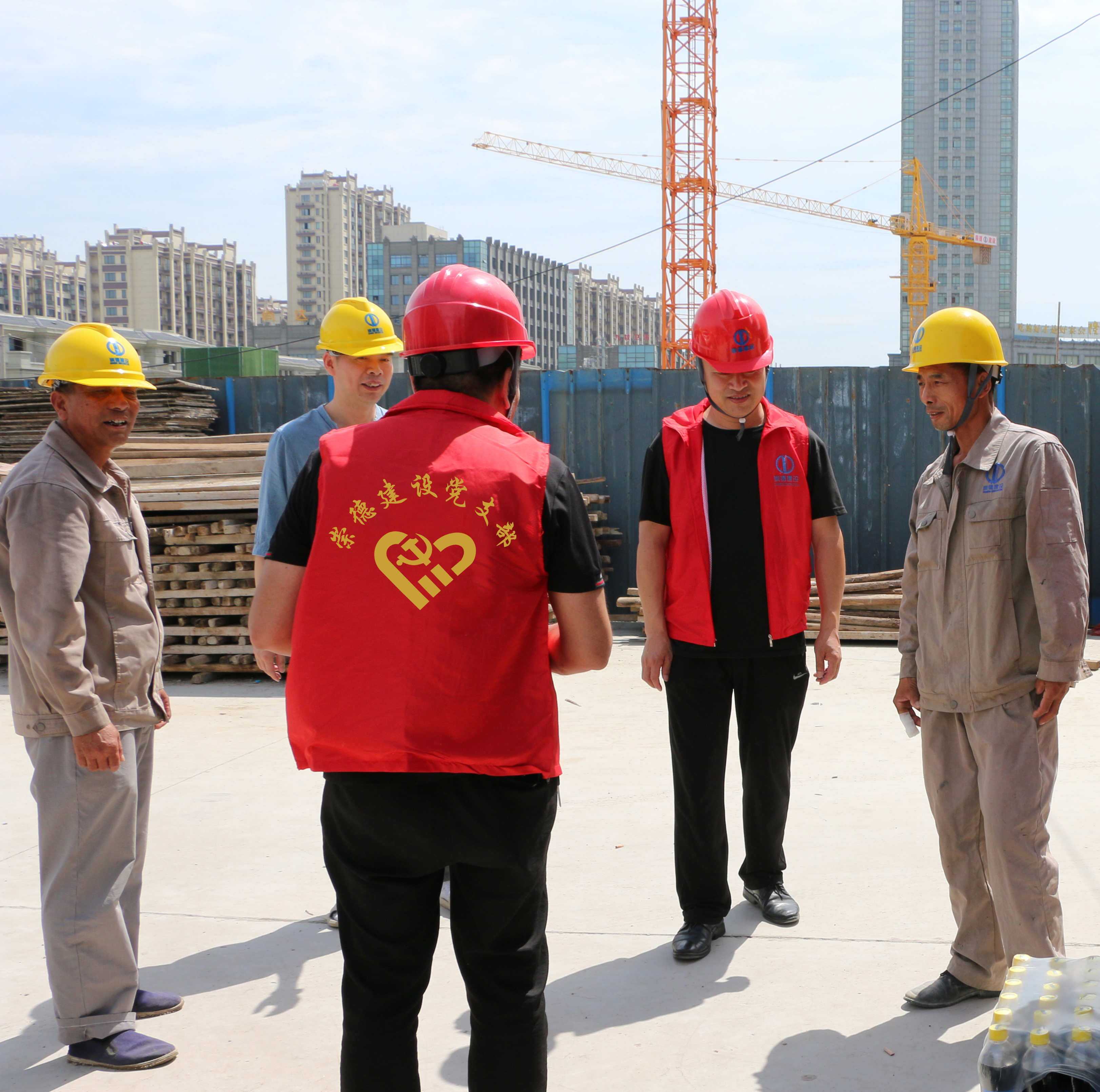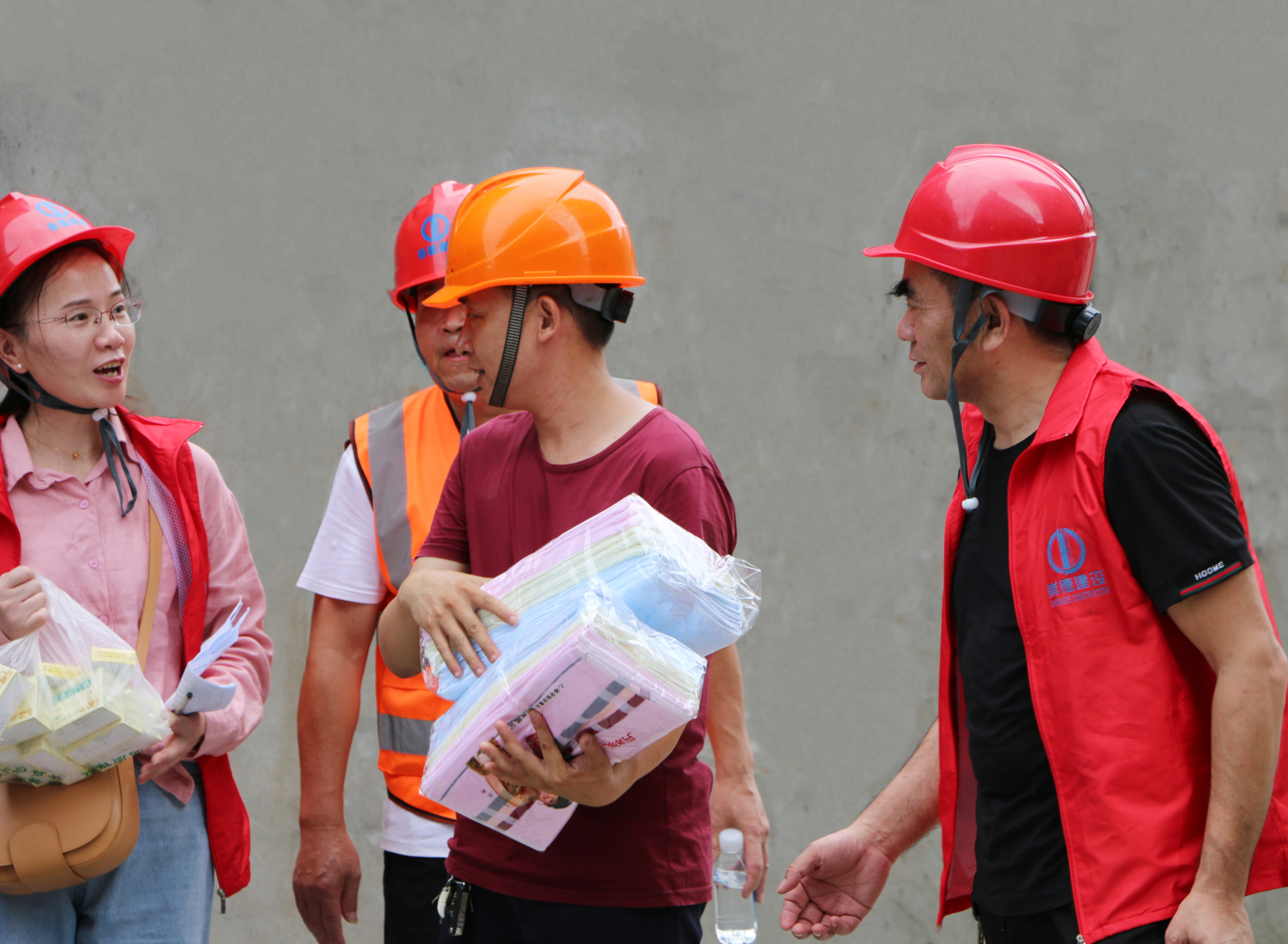自8月7日以來,由公司黨支部書記柴永根、質(zhì)安副總沈建民等部門負(fù)責(zé)人組成的高溫慰問小組,一站接一站赴工地,看望慰問奮戰(zhàn)在高溫一線的施工人員,詢問高溫作業(yè)情況,為他們送去高溫慰問品,感謝他們戰(zhàn)高溫、斗酷暑,堅守崗位。