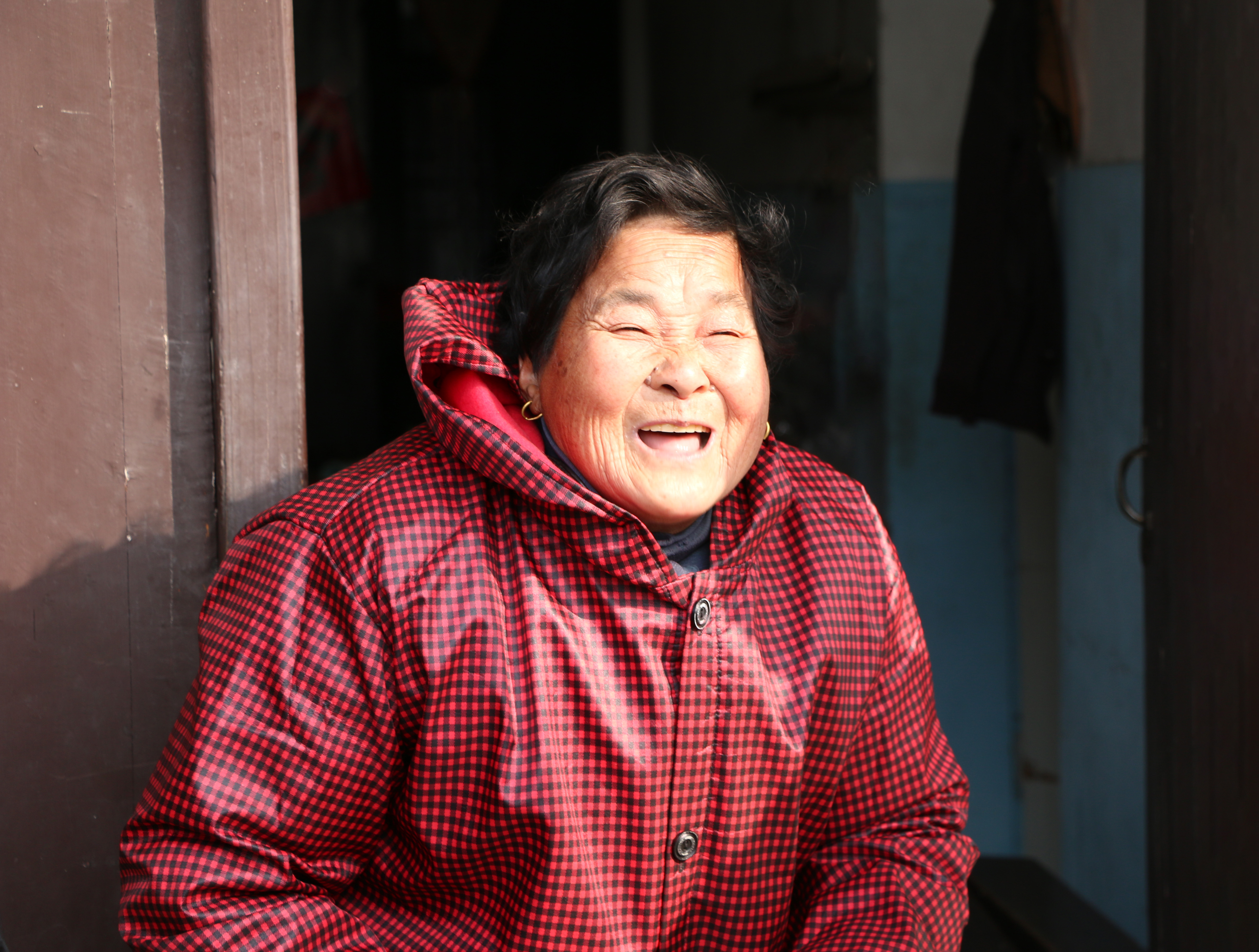 低矮的屋檐下,87歲的沈金雞的老伴正在曬太陽。這個滿臉皺紋的老太太還沒有等慰問組一行走近就扯著嗓門叫人。原來,她一眼就認出了他們。