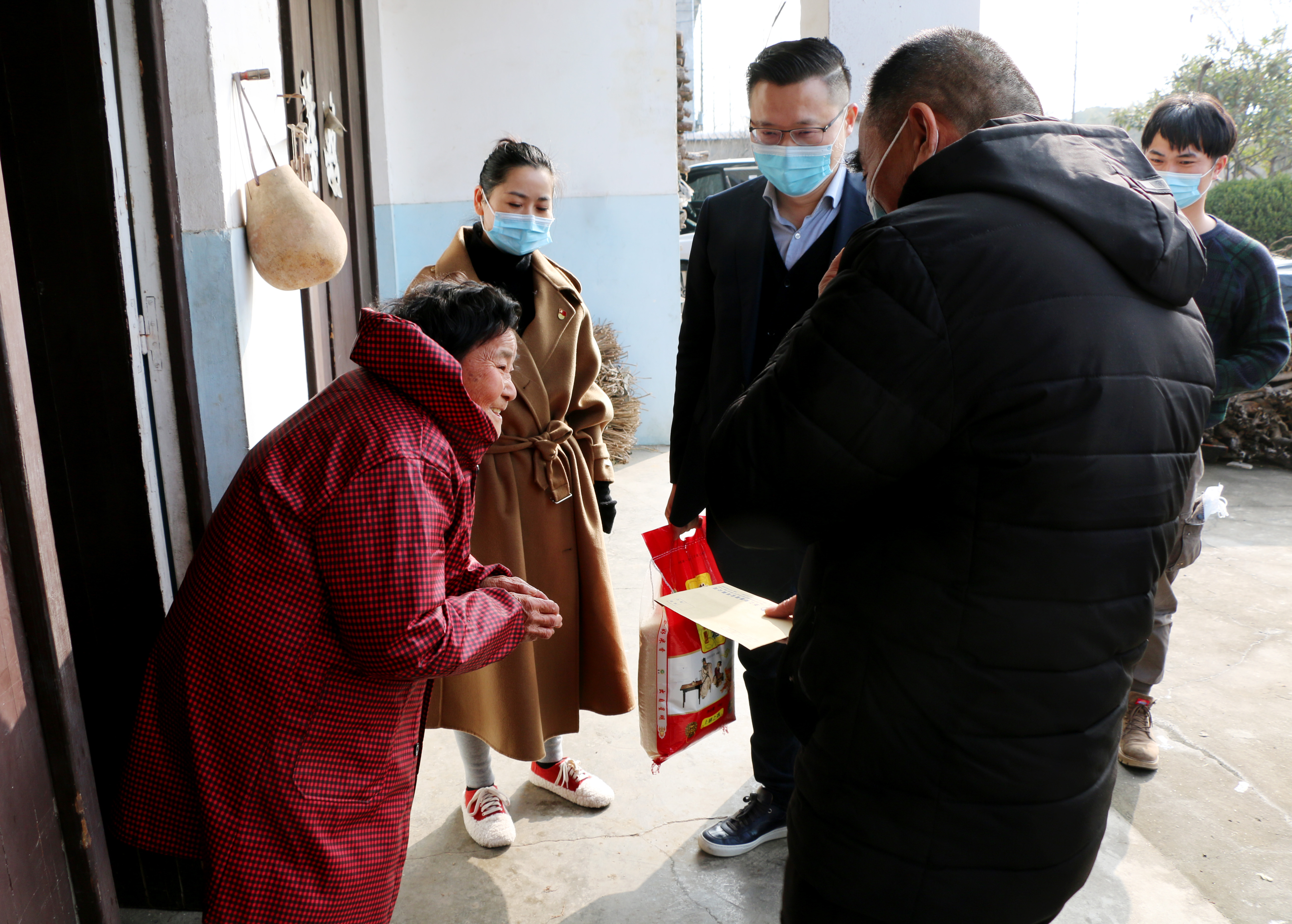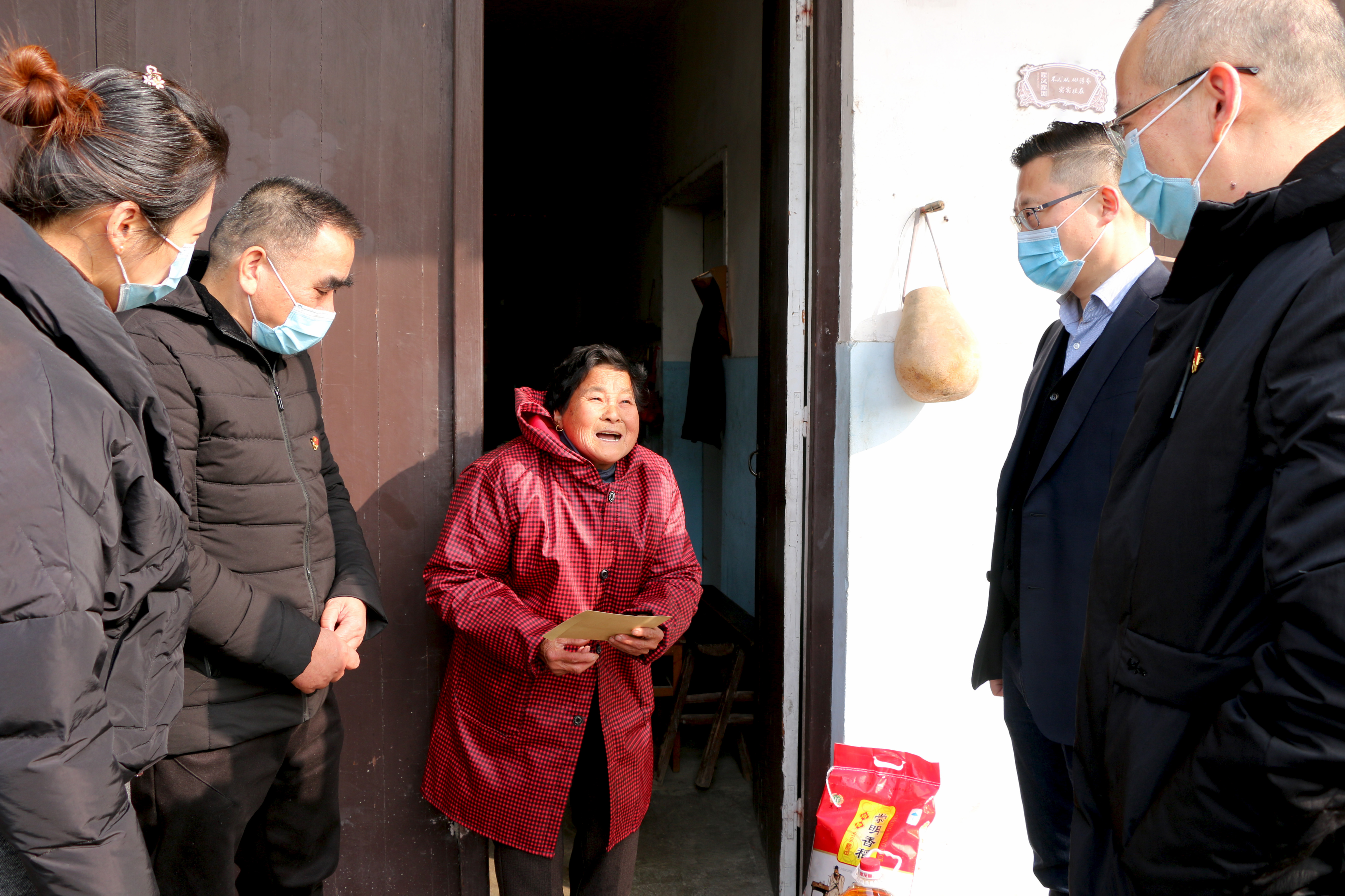 “別忙,我們就來看看你們!”慰問組一行趕忙迎上去,將油、米等慰問品以及慰問金遞過去。頓時,老人滿臉笑容:“你們太有心了,振華、永根,你們……”一聽還有政府指派的黨建指導員也來了,老人激動地說:“啊!我們感謝政府啊!”