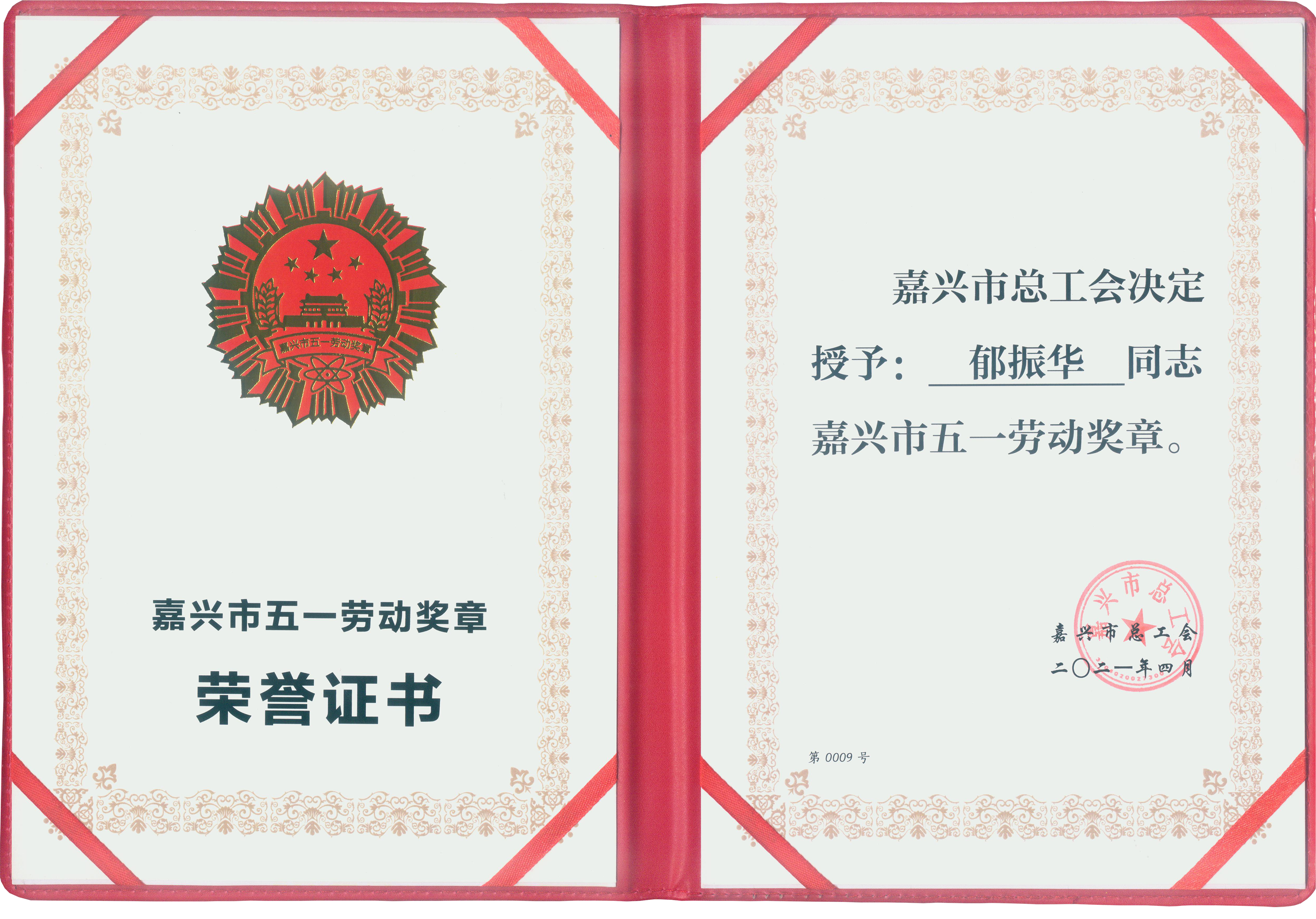 喜報!浙江崇德建設(shè)有限公司董事長兼總經(jīng)理郁振華被授予“嘉興市五一勞動獎?wù)?rdquo;