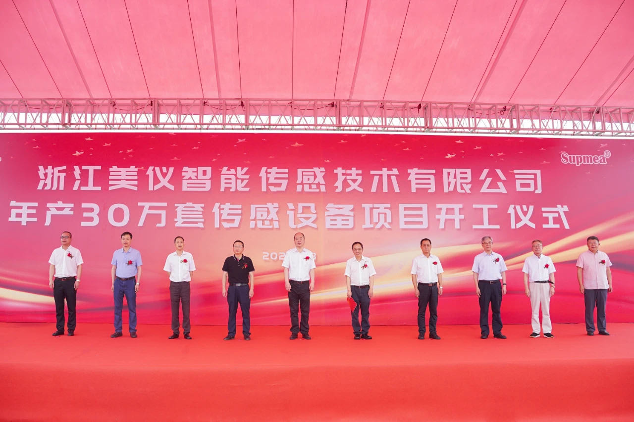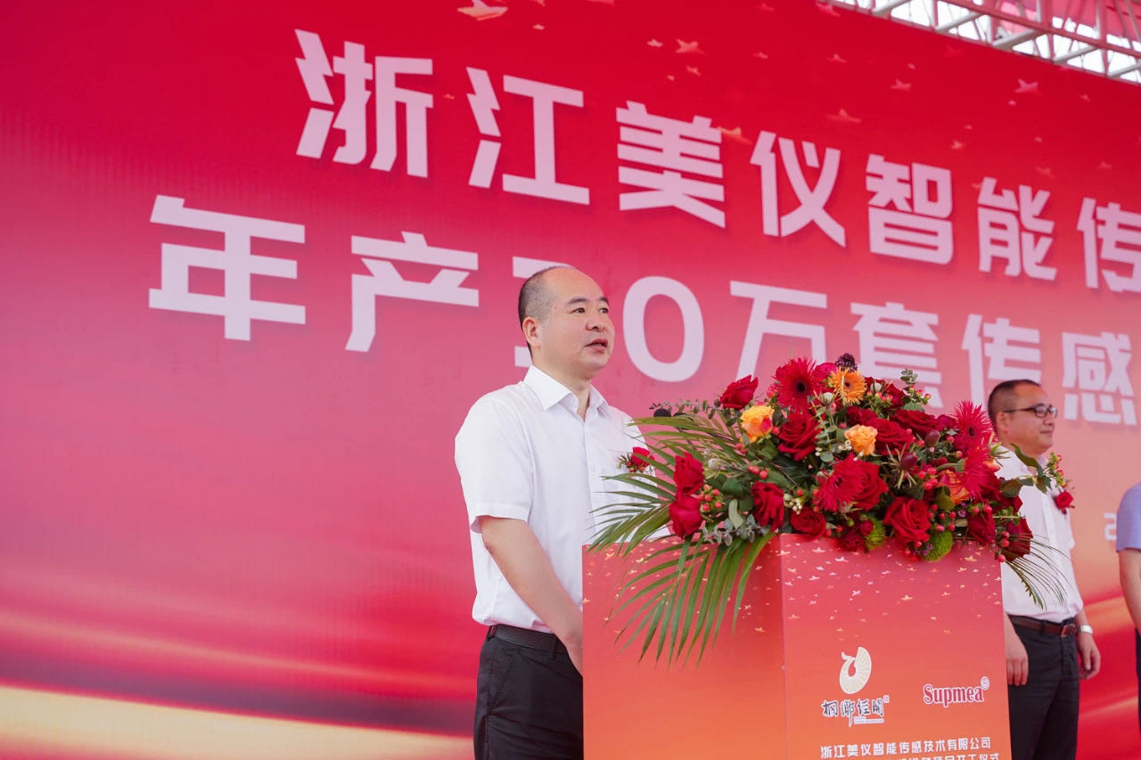 桐鄉市領導蔡立新、沈建坤、李云飛出席開工儀式。美儀董事長丁程、中國儀器儀表行業協會秘書長李躍光、中控科技集團創始人褚健、桐鄉經開區黨工委書記屠建忠分別致辭。