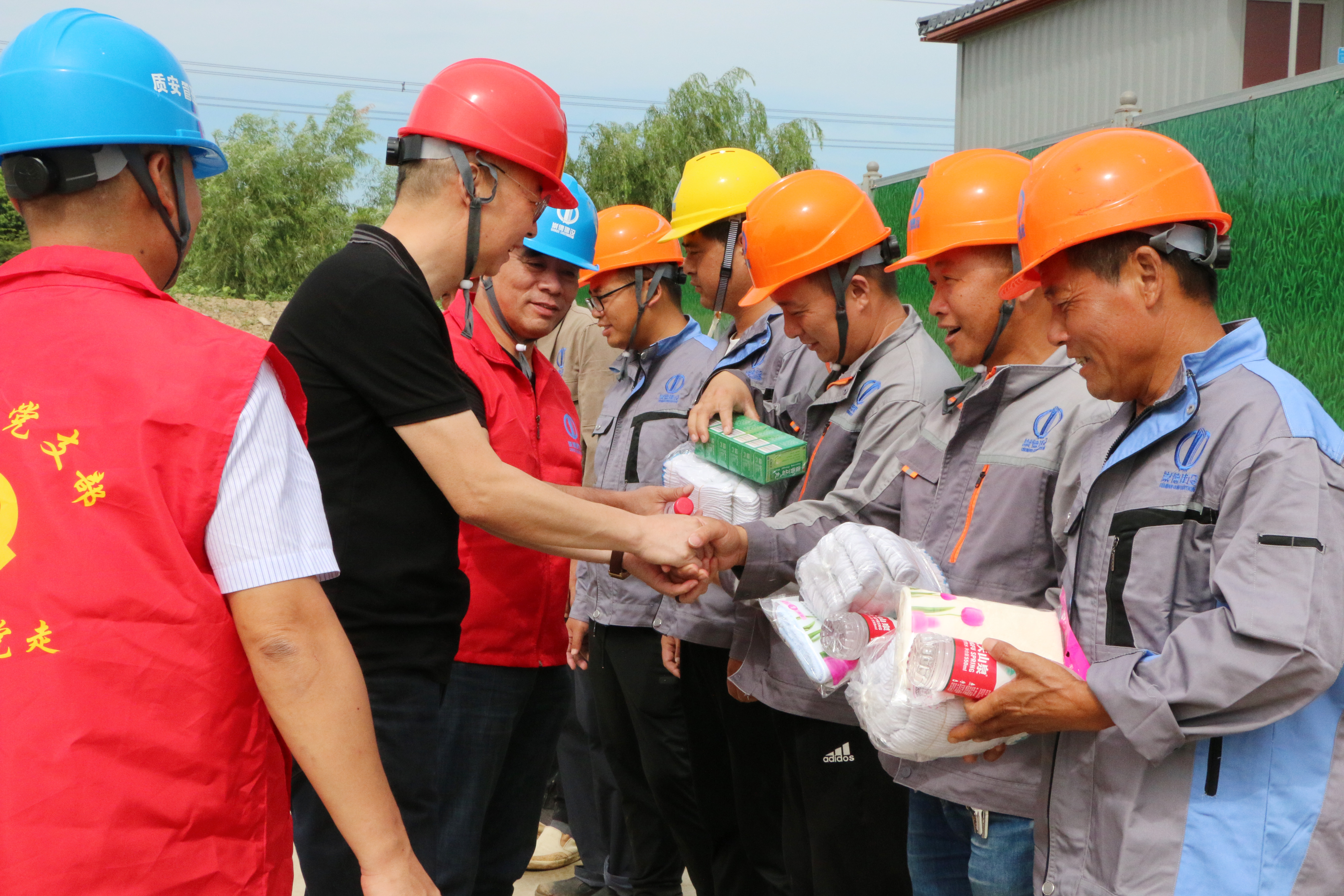 烈日灼地,高溫酷暑。自入伏以來,桐鄉市氣溫節節攀升,暑氣逼人,“烤”驗非常。連續的高溫,時刻牽動著公司領導們的心。在疫情防控常態化條件下,為切實做好防暑降溫工作,確保一線施工人員平安度夏,保障安全生產,自7月15日以來,浙江崇德建設有限公司組織開展“夏日送清涼慰問活動”。由公司黨支部書記、黨建指導員、質安副總、總工程師、工會主席等組成的高溫慰問小組,一站接一站趕赴工地,看望慰問堅守在高溫一線的施工人員,為他們送上了防暑降溫相應物品,感謝他們用責任和擔當戰高溫斗酷暑,頂烈日戰驕陽。