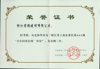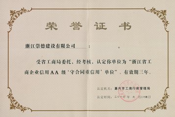 浙江省工商企業(yè)信用(AA級)守合同重信用單位