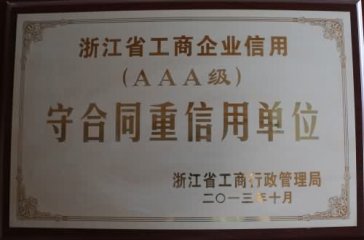 浙江省工商企業信用AAA級守合同重信用單位